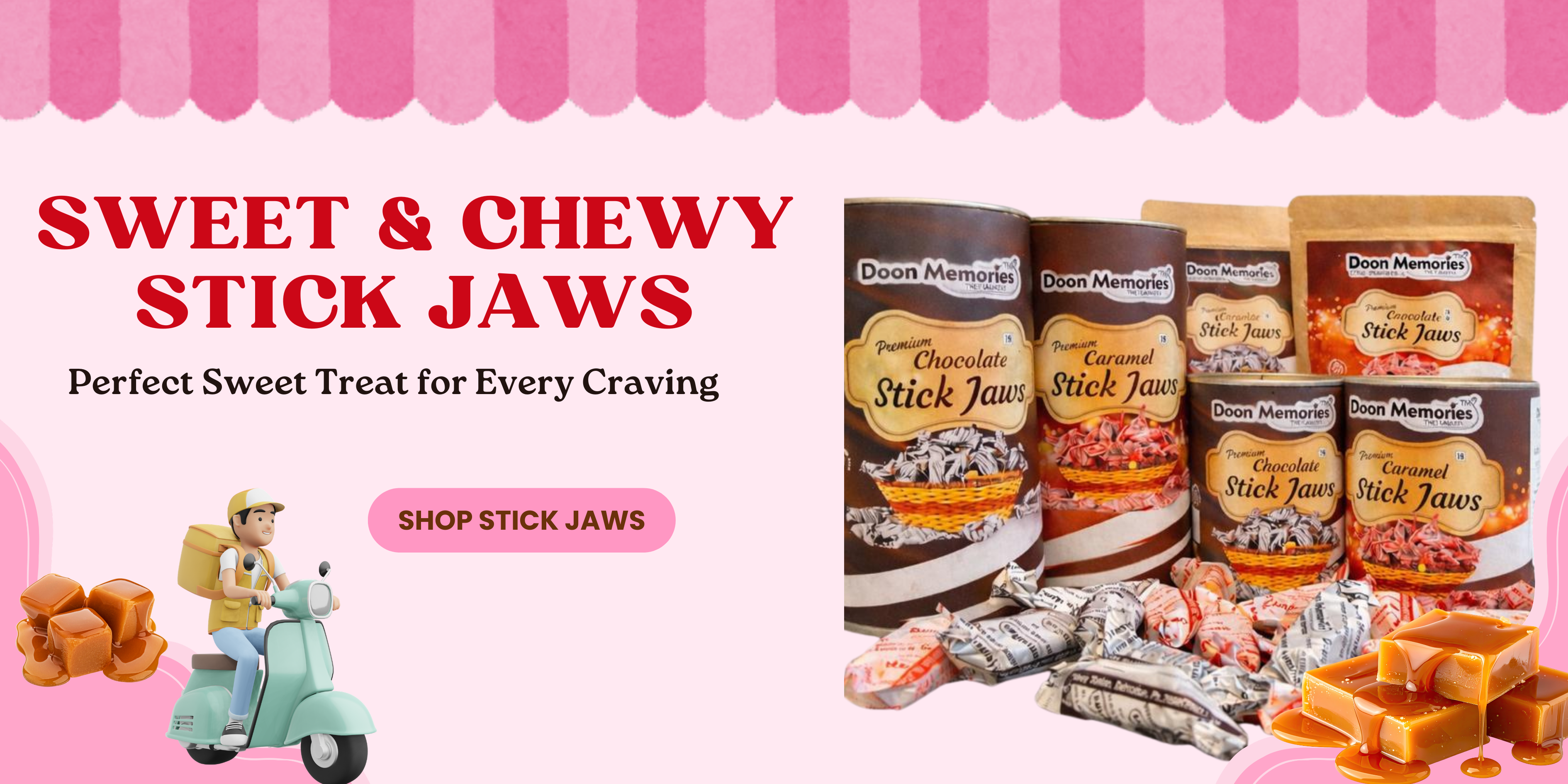 our special desi stickjaws are a customer favourite, and weβve got a size and flavour for everyone! You can choose from our rich Caramel Stick Jaws Toffees or the indulgent Chocolate Stick Jaws, both available in three different packs. For a small trial or a personal treat, grab the 100gm pack (βΉ140) . If you're sharing with family, the 200gm pack (βΉ275) is just right. And for big celebrations or to stock up your snack box, our 400gm pack (βΉ550) is the perfect choice. No matter which you pick, all are made with that same rich blend of Mithai Mate, butter, and milk powder. Explore all our Caramel and Chocolate Stick Jaws here and find your new favourite!